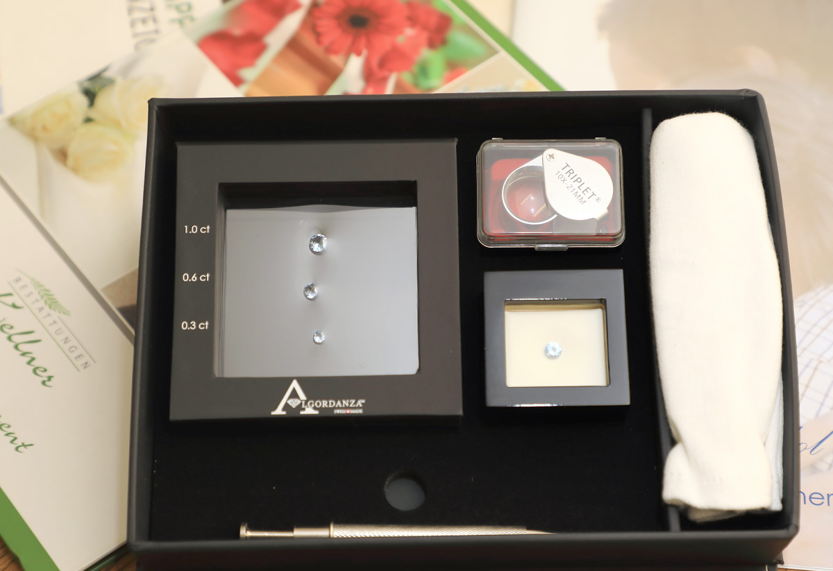 Als ein besonders persönliches Erinnerungsstück dient der Haarkristall. Durch ein spezielles physikalisches Verfahren werden hierbei die Haare eines Menschen zu einem Kristall verarbeitet.