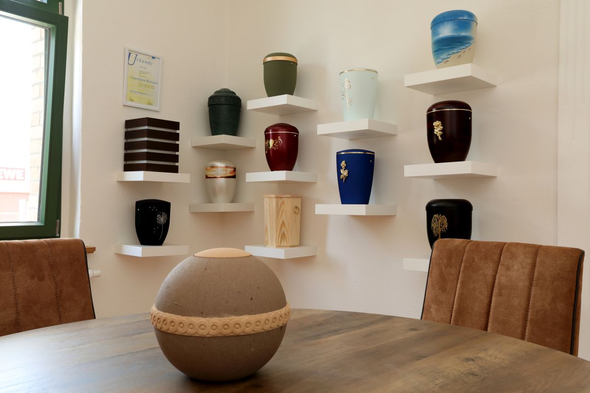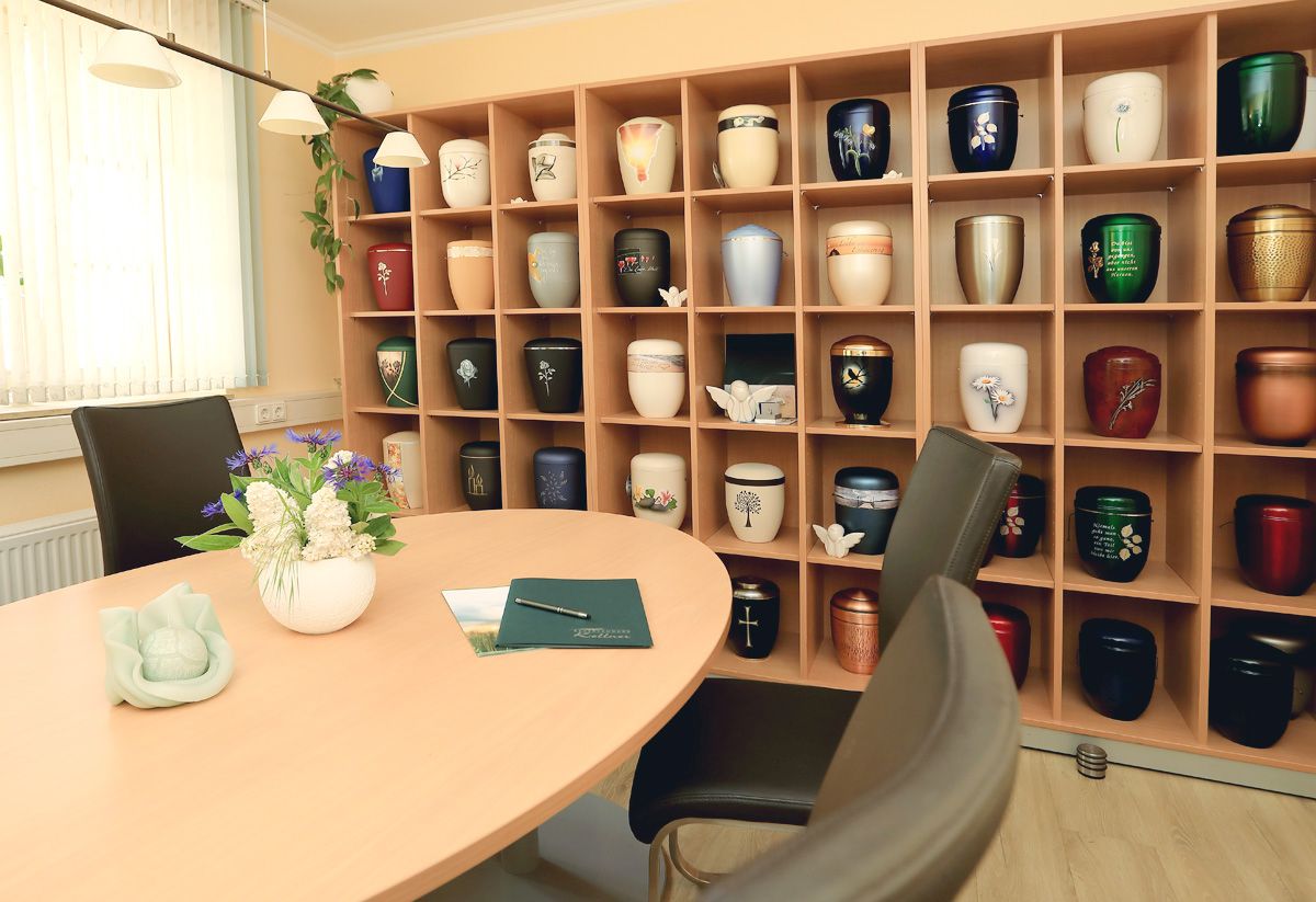 In der Klosterstraße 35 in Angermünde, in der Auguststraße 11 in Schwedt/Oder und in der Pommernstraße 133 in Gartz (Oder) finden Sie neben freundlich und modern eingerichteten Besprechungsräumen auch Ausstellungsräume, in denen Sie sich unsere Särge, Urnen und weitere Produkte in Ruhe ansehen können.